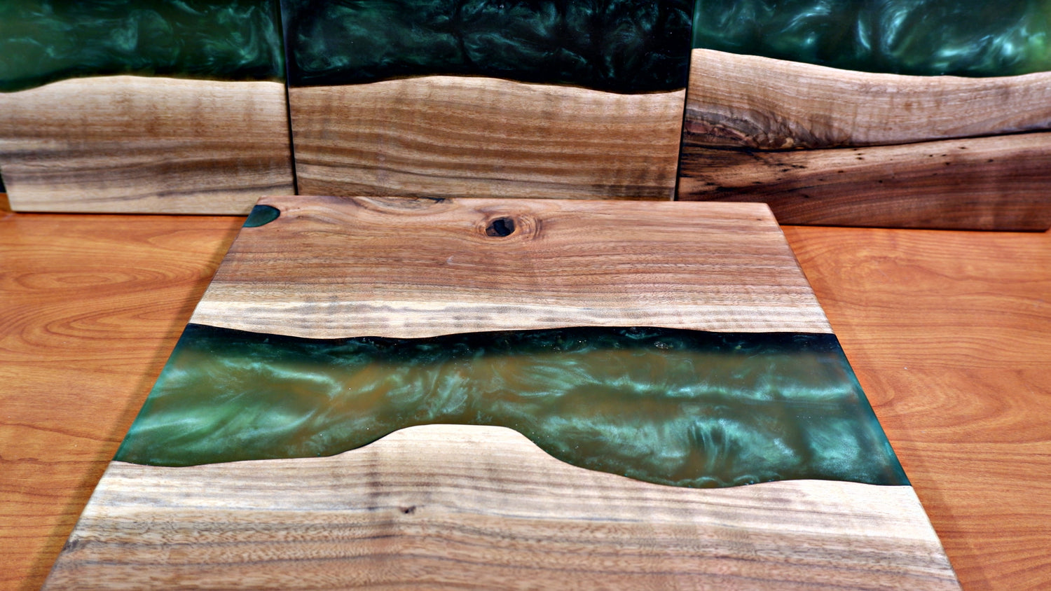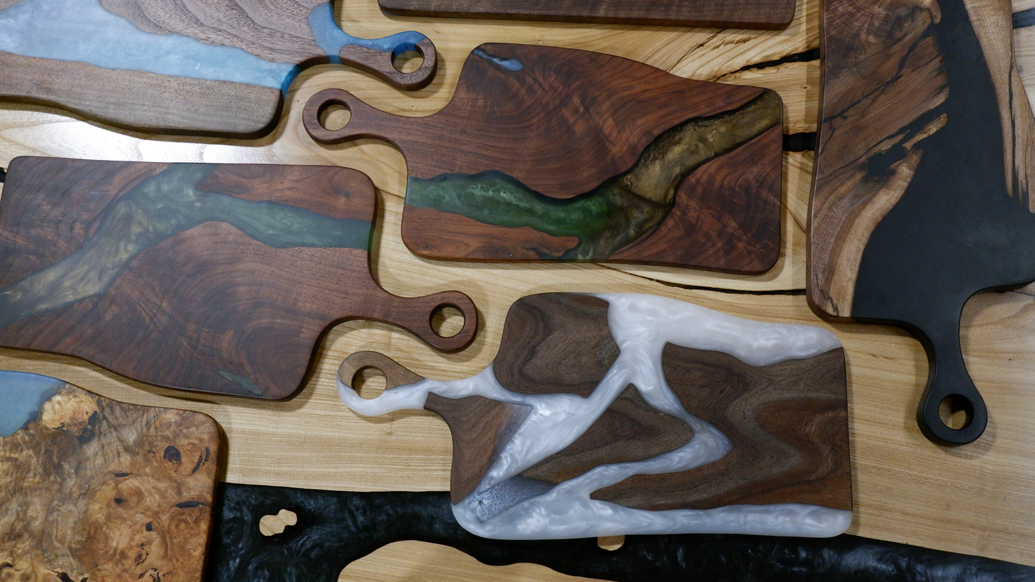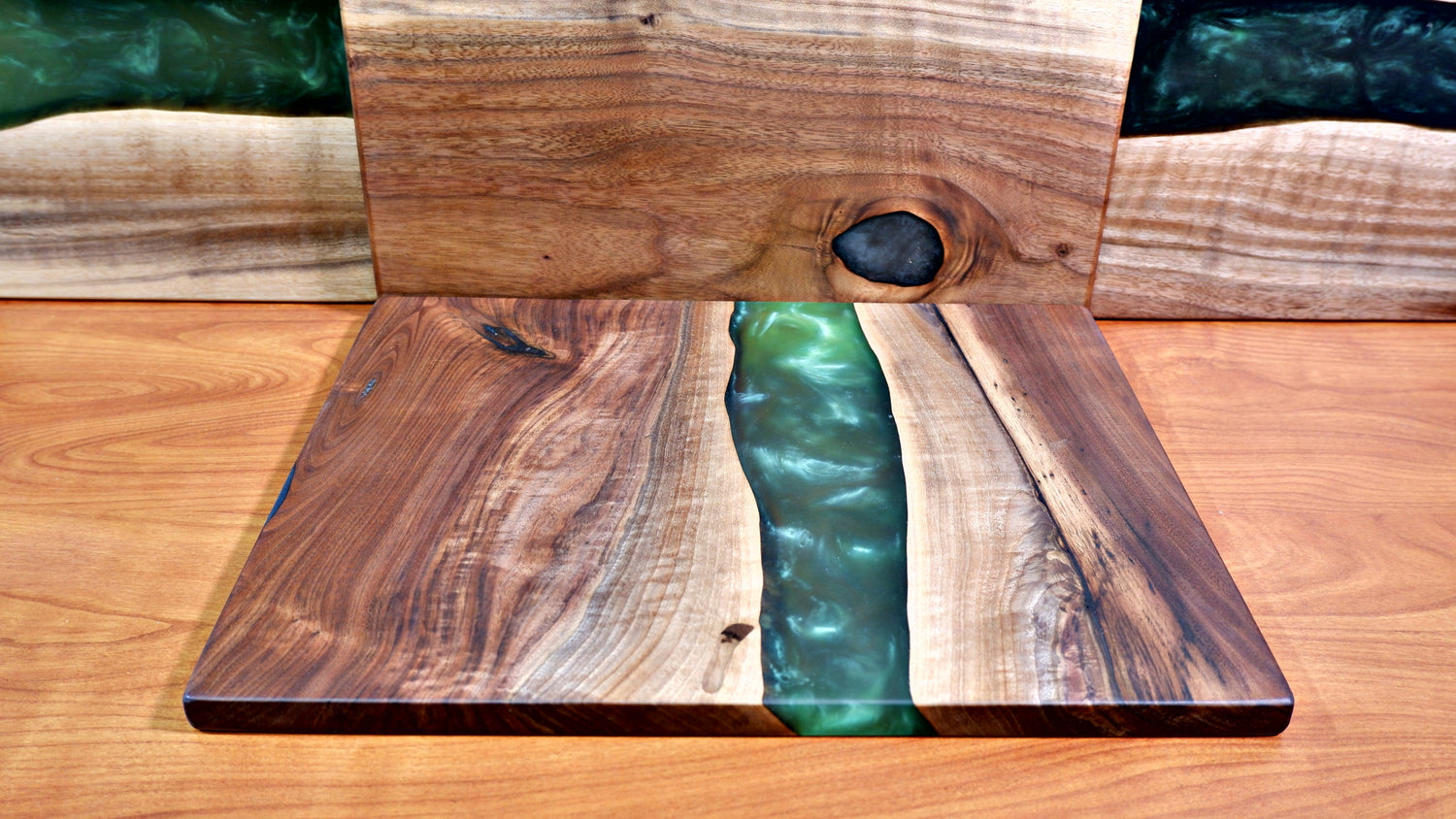 We're all about form + function meeting in harmony like these everyday serving boards and charcuterie boards that are beautiful and functional. Some of these gems have river pours or epoxy gems, making each piece unique. Choose from handled boards, classic rectangles, and statement serving trays in popular sizes (9×12, 12×16, 16×20), or customize color and dimensions. Handcrafted in Boise with quick shipping and easy care.