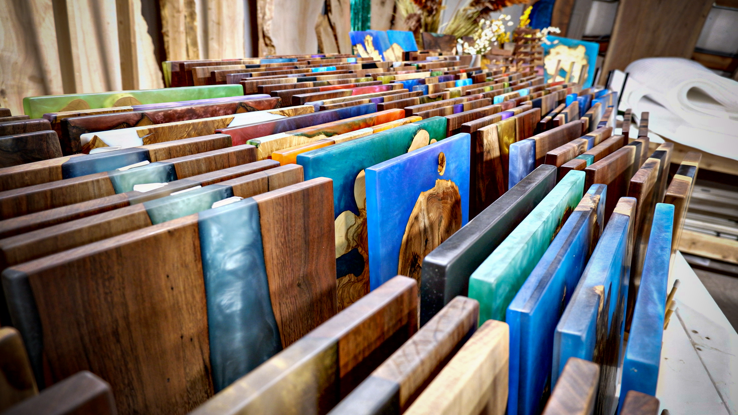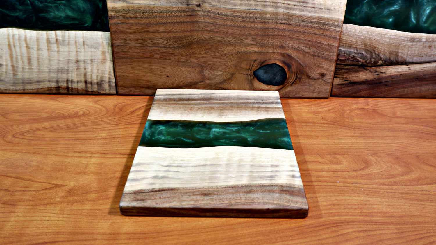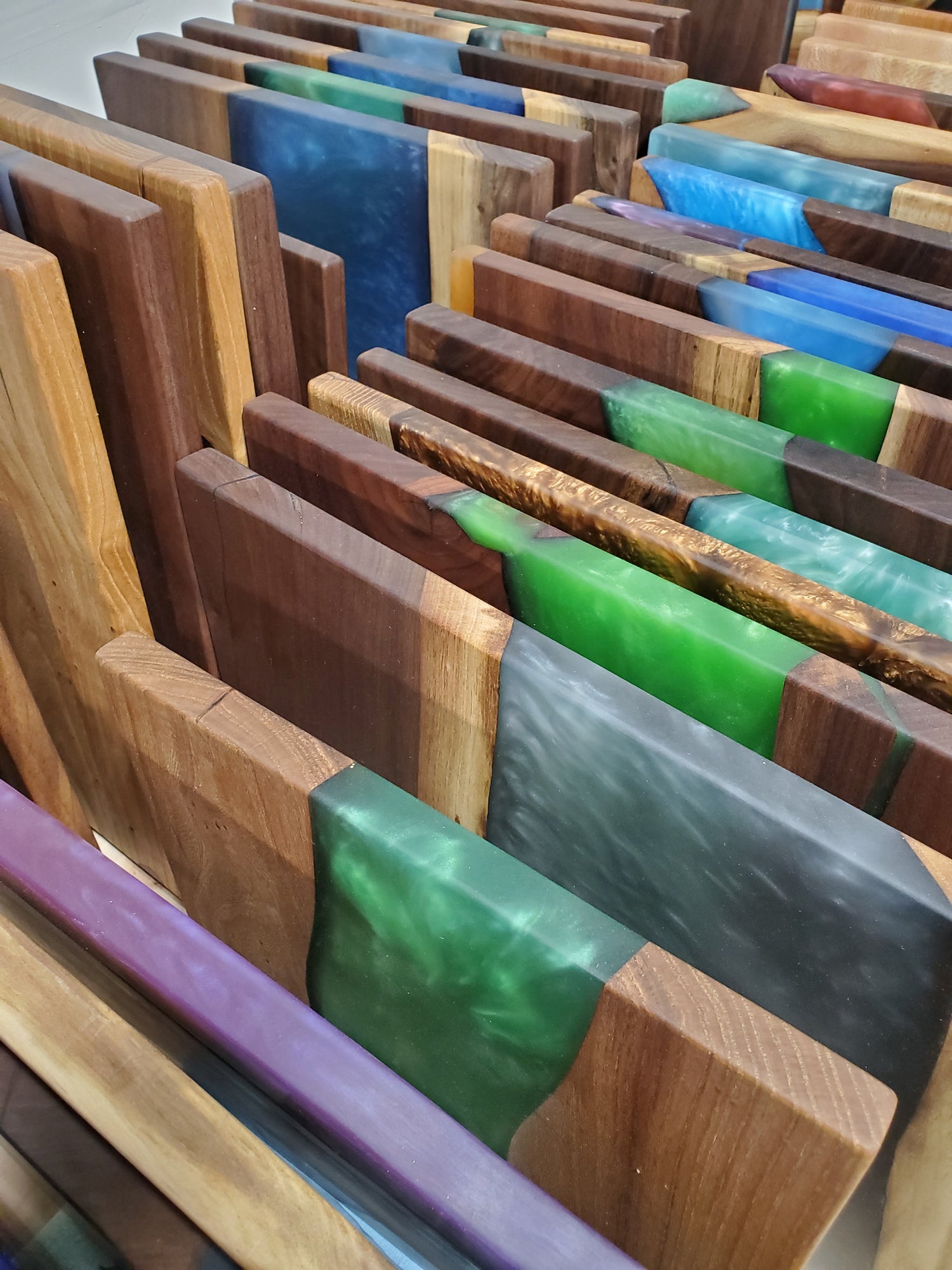We're all about form + function meeting in harmony like these everyday serving boards and charcuterie boards that are beautiful and functional. Some of these gems have river pours or epoxy gems, making each piece unique. Choose from handled boards, classic rectangles, and statement serving trays in popular sizes (9×12, 12×16, 16×20), or customize color and dimensions. Handcrafted in Boise with quick shipping and easy care.