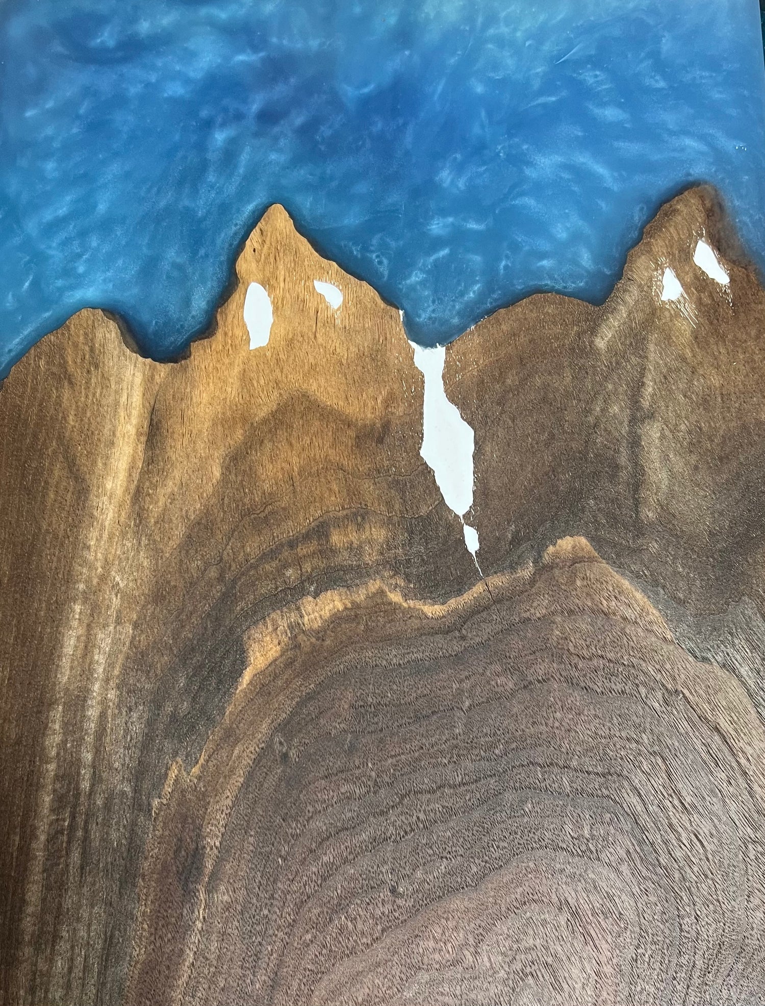 12" x 20" Maple Wood & Turquoise Epoxy Resin River Charcuterie Board