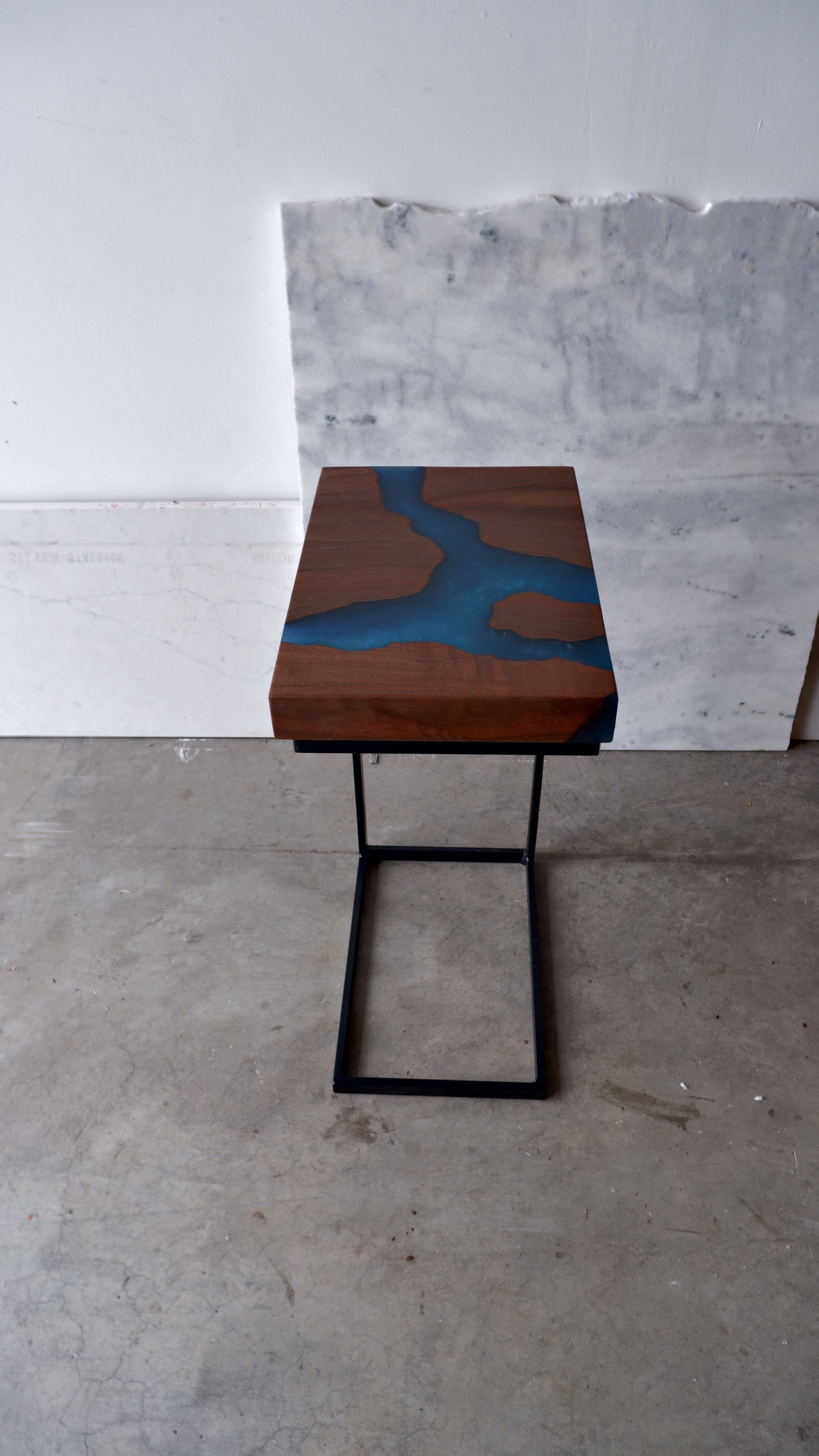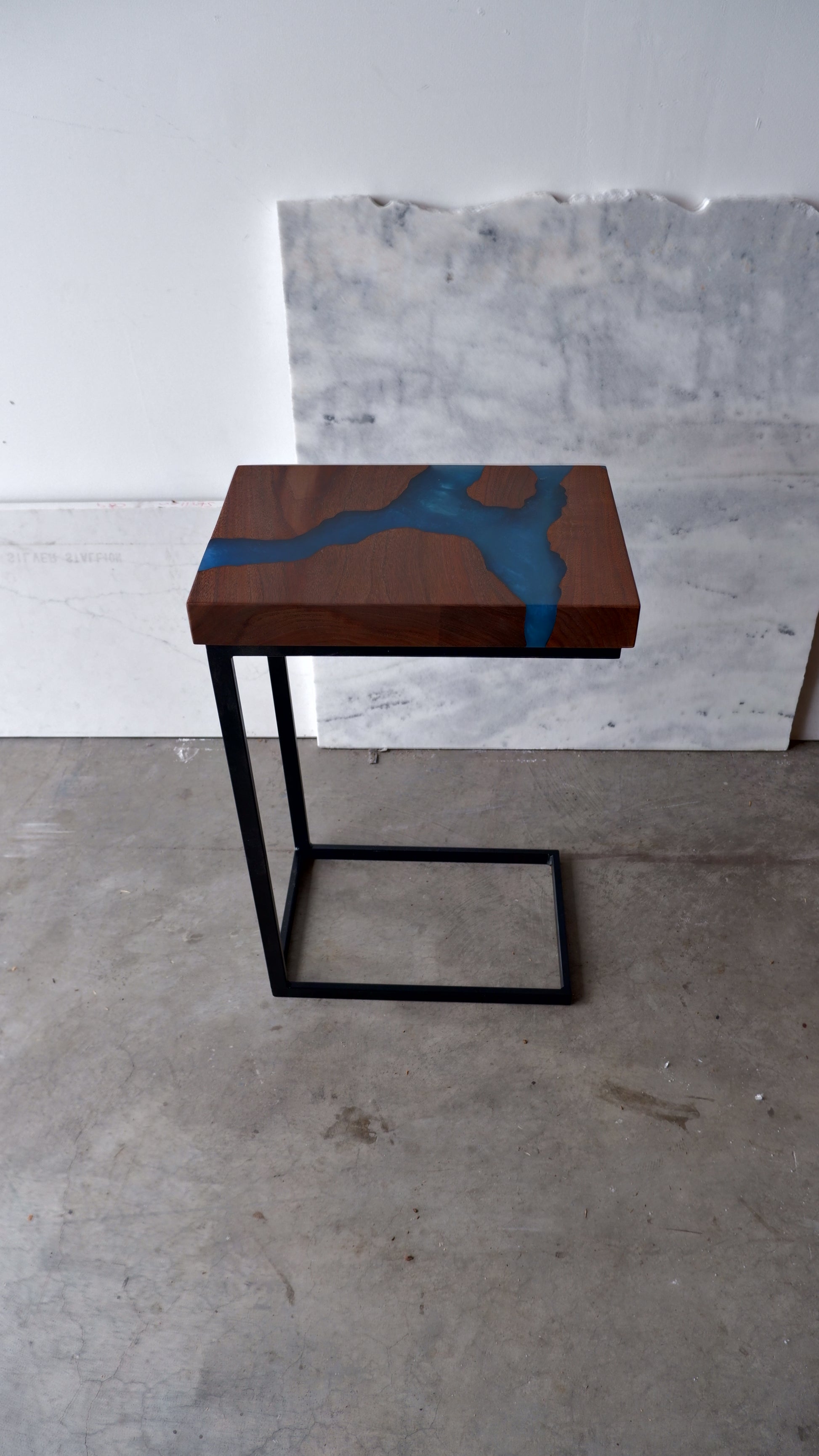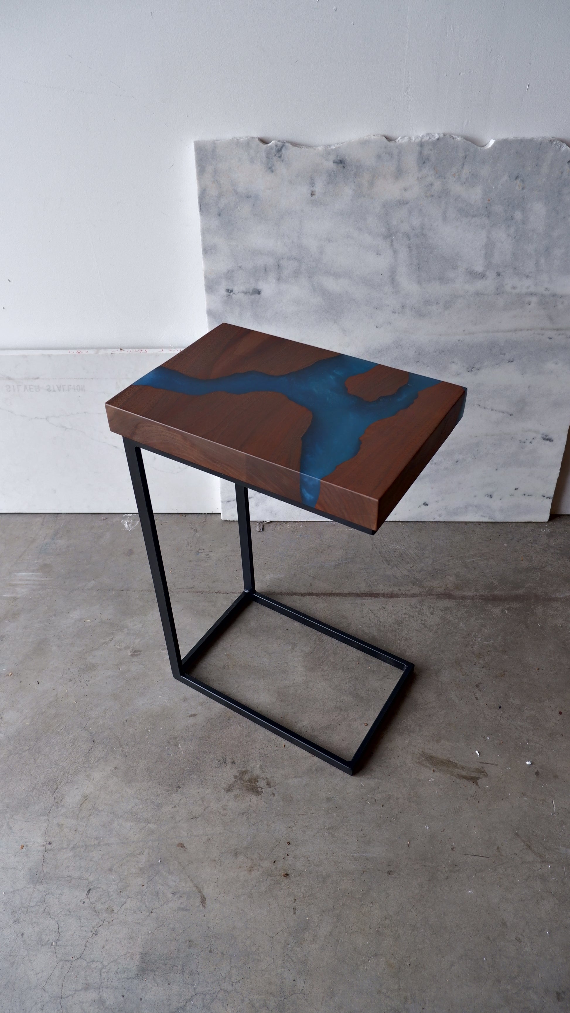 Black Walnut C-Table with Blue River