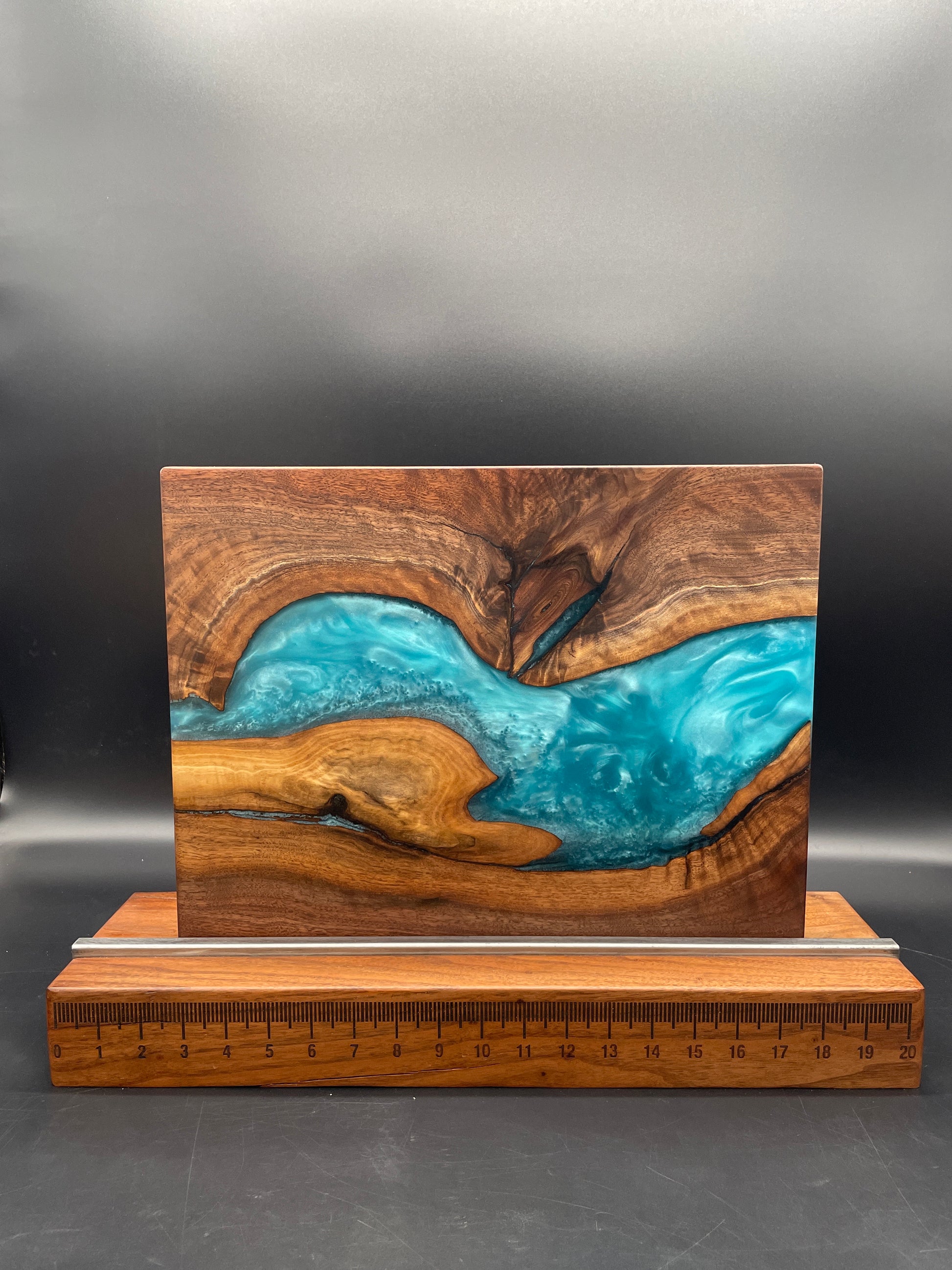 While you can use this as a cutting board, to preserve its beauty, we recommend using it as a serving board, but feel free to use it as a cutting board if you wish.  If you decide to use it as a cutting board, it will develop knife marks as any wood board will. The resin is tougher on knives than wood, so be advised that your edges might dull faster if you cut on the resin often.