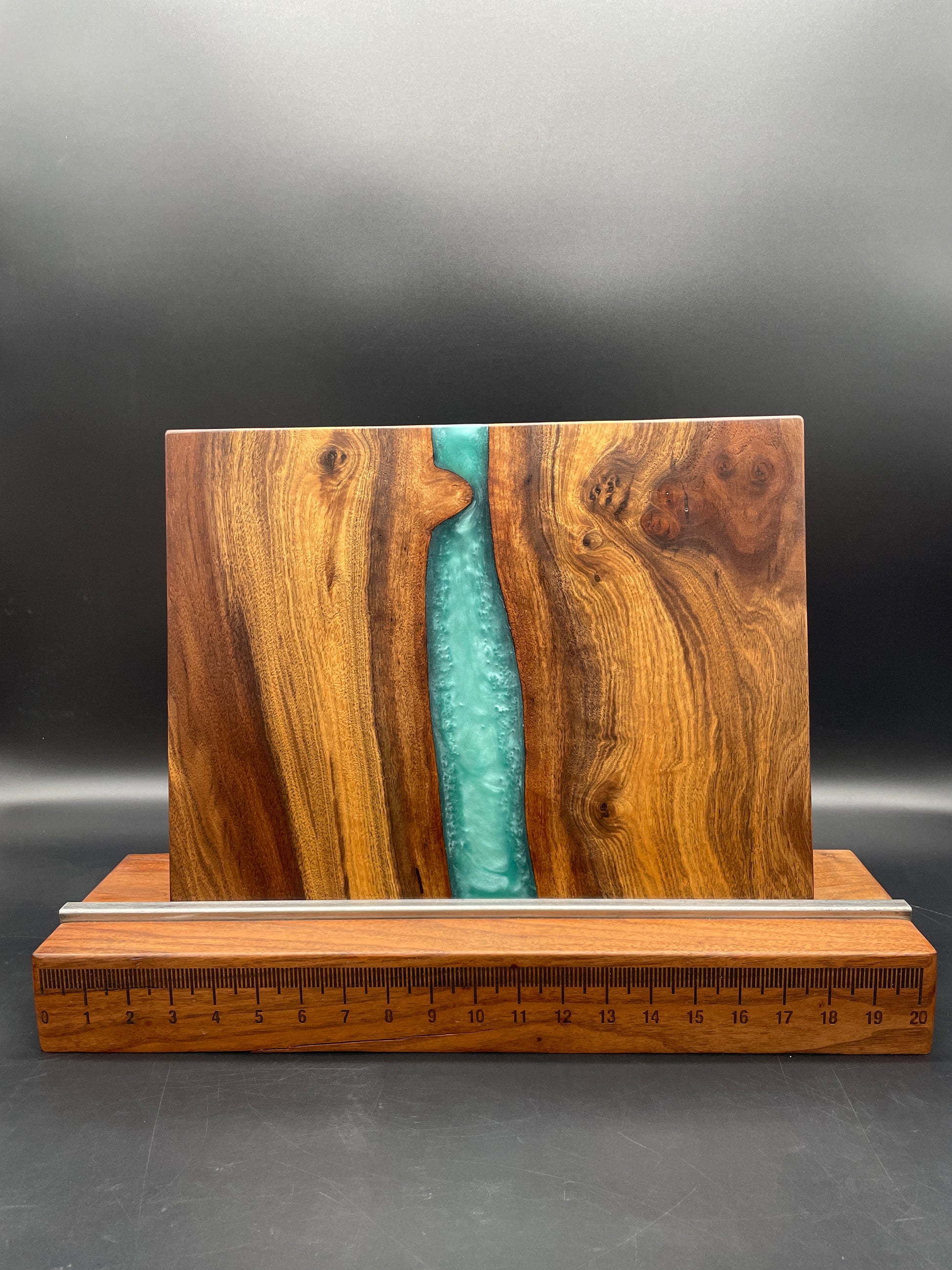 While you can use this as a cutting board, to preserve its beauty, we recommend using it as a serving board, but feel free to use it as a cutting board if you wish.  If you decide to use it as a cutting board, it will develop knife marks as any wood board will. The resin is tougher on knives than wood, so be advised that your edges might dull faster if you cut on the resin often.