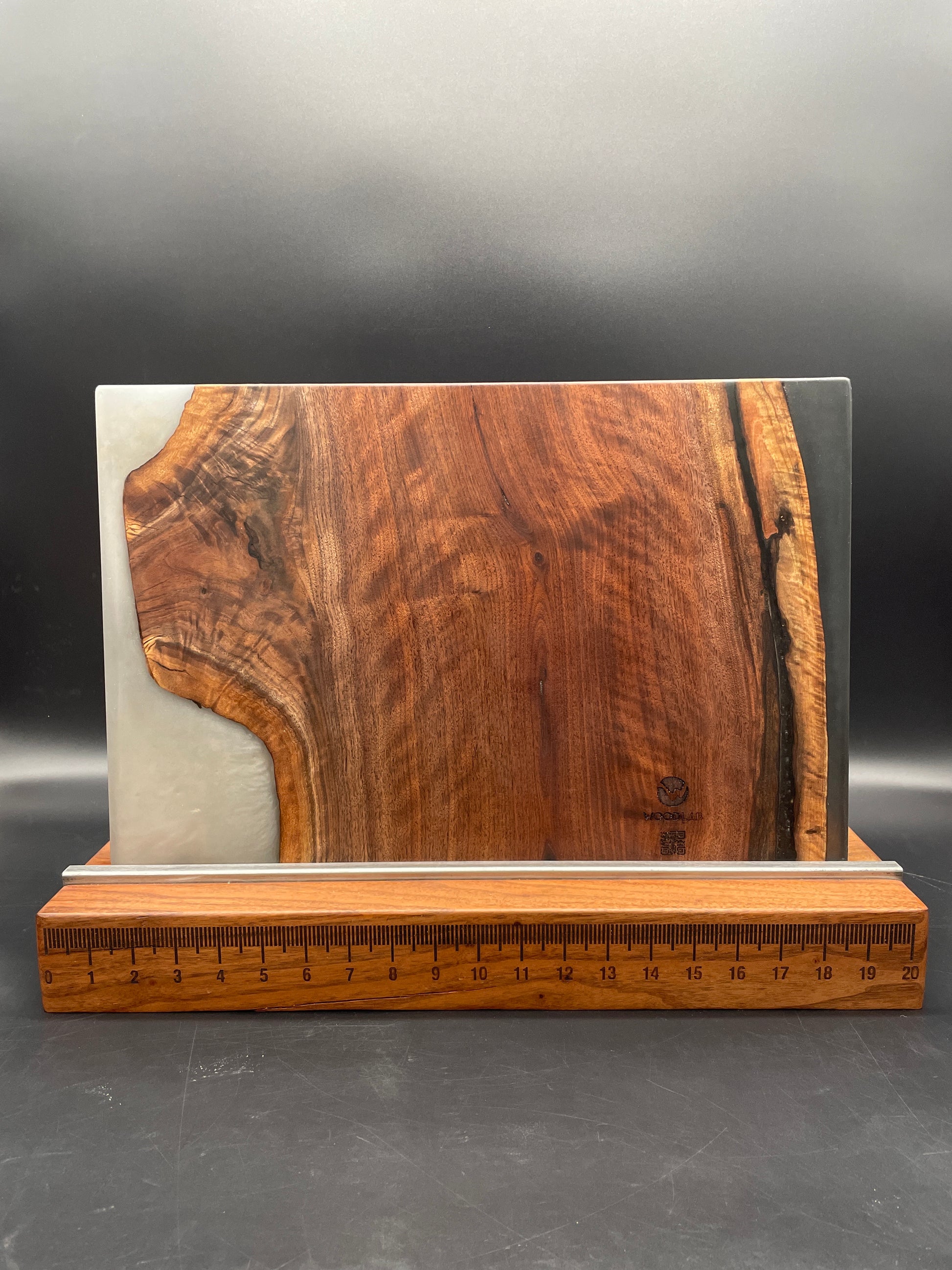 We use a variety of materials to make this possible. The pour table surface is made of a thick sheet of High-density polyurethane (HDPE), which prevents the resin from absorbing into the table surface.
