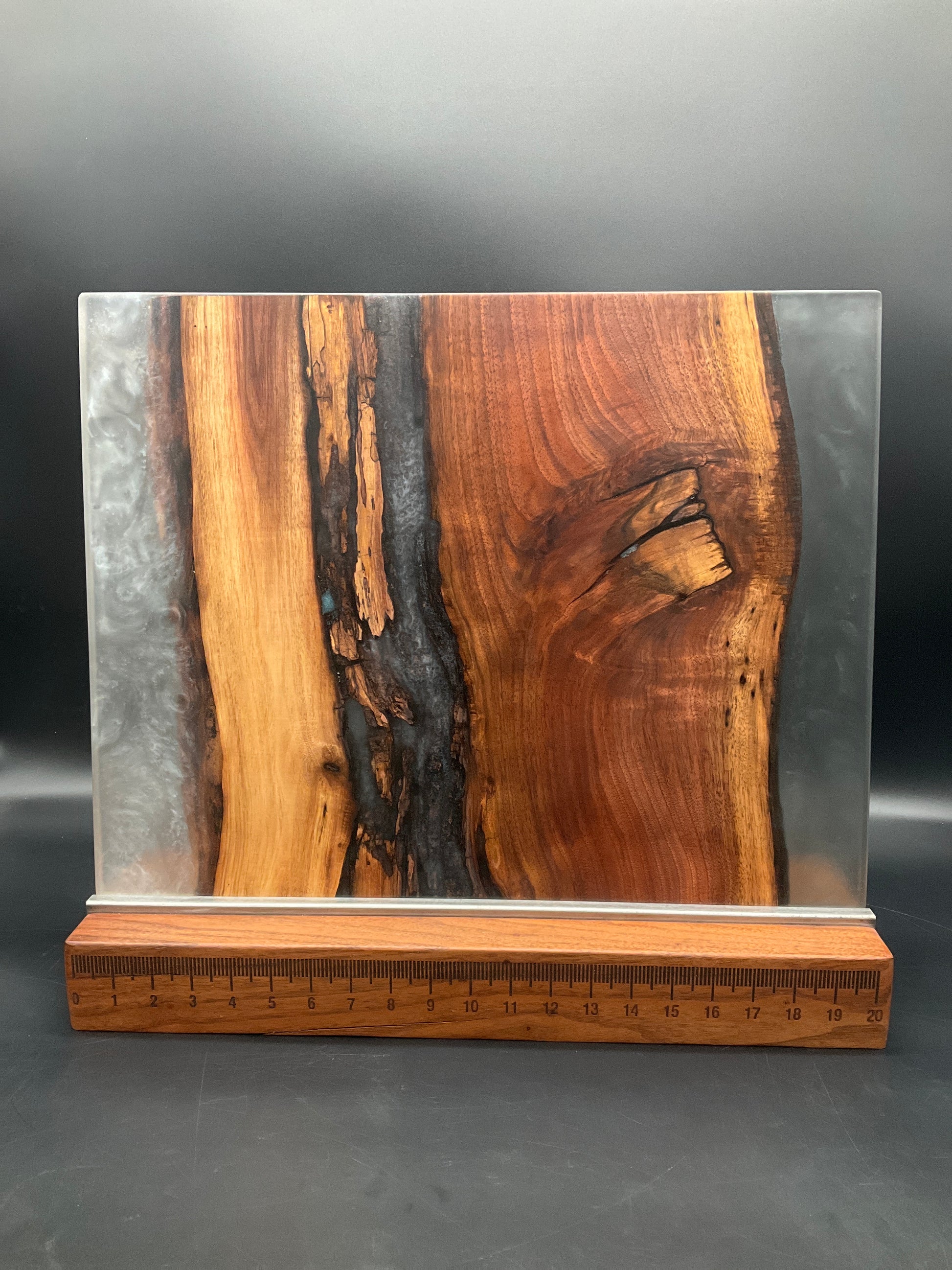 We fill voids using EcoPoxy™ FlowCast- the most eco-friendly epoxy resin on the market. It creates a seamless, integrated attachment to the wood, ensuring integrity and food safety.