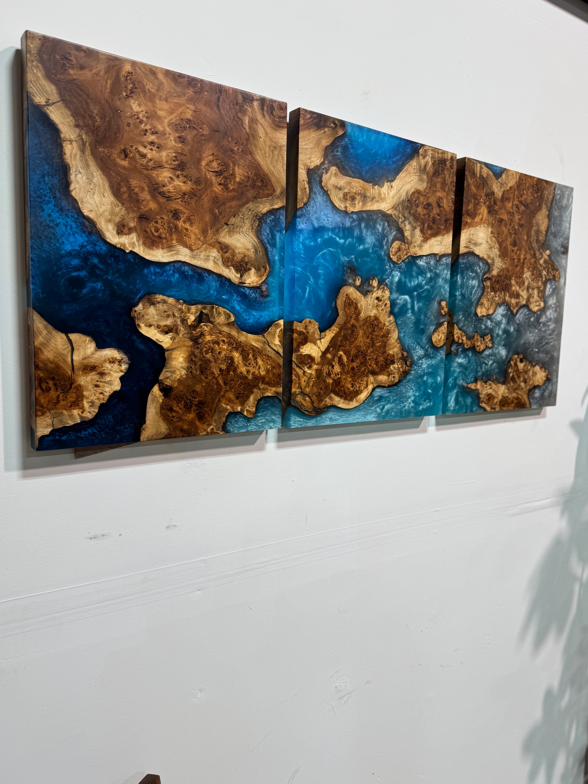 We pour as much as the crest of the river will allow and let it cure. Typically, the resin infiltrates and absorbs into the wood, and we have to watch it, not only for leaks but to top it up as needed. Once we're confident, we let it be. With the amounts of epoxy we use, it takes about 3 days to cure.