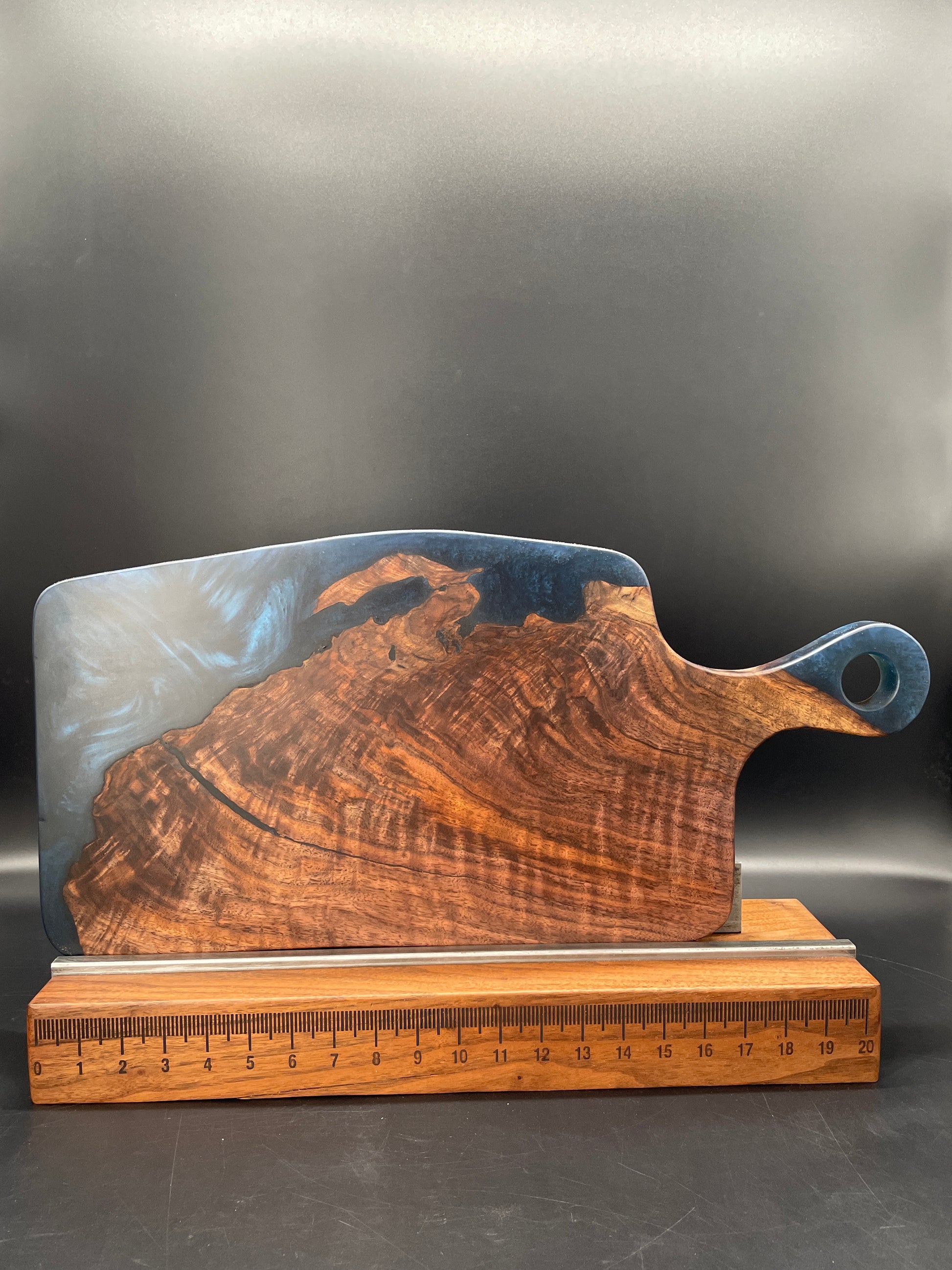 Handled Blue Epoxy Encasement and Black Walnut Charcuterie Board